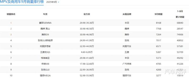 9月MPV市场格局迎来剧烈震荡,TOP 10排名颠覆过往认知,曾经的标杆车型纷纷移位,黑马车型强势突围,让网友直呼“没想到”。