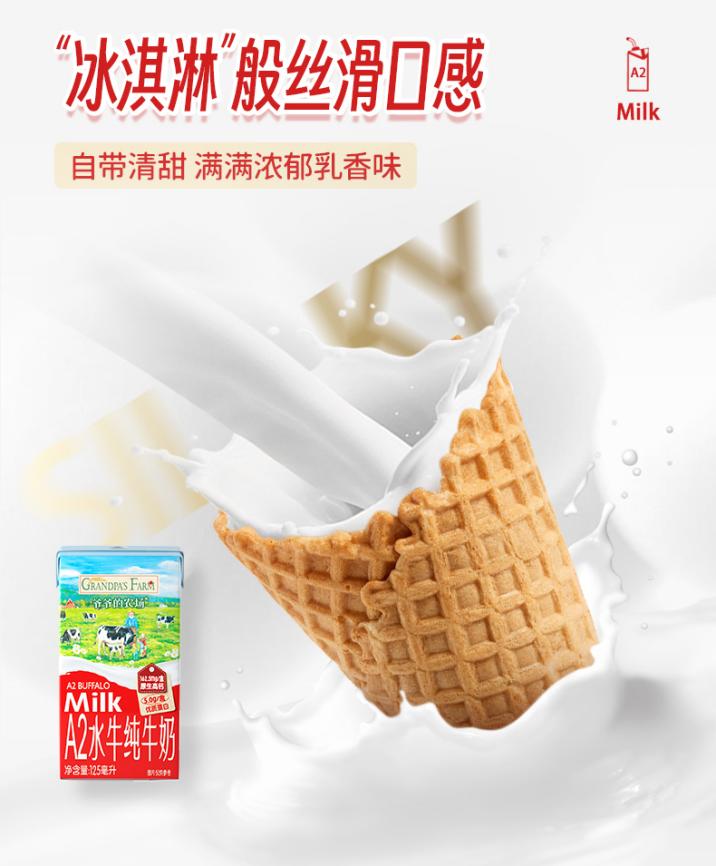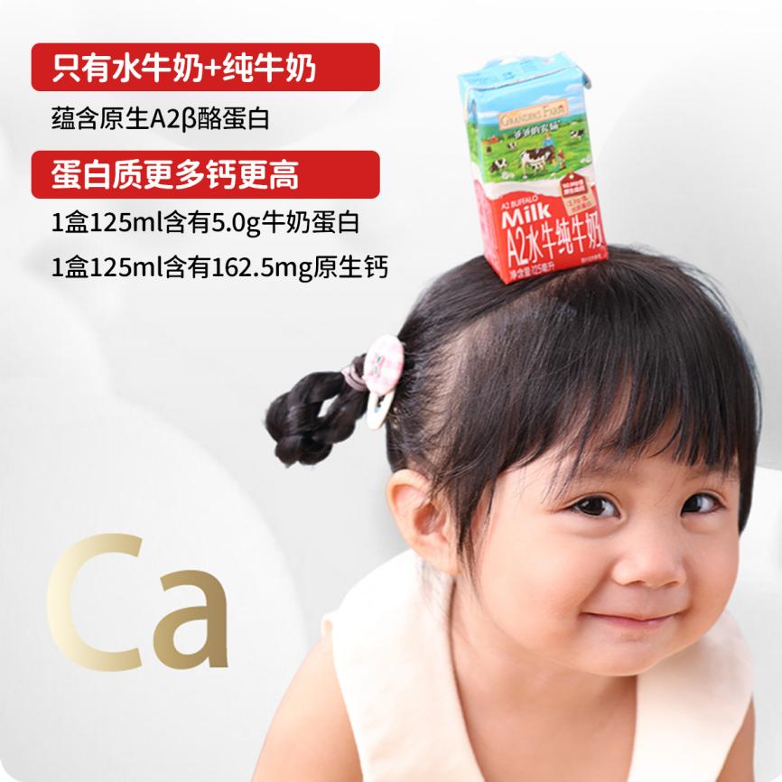 125ml定量的Mini小盒装,不但有效解决了孩子喝奶容易浪费的问题,更赋予产品极致的便携性,随时随地助力补充优质营养。无论是早餐搭配、外出游玩,还是工作上学、下班追剧等,爷爷的农场A2水牛纯牛奶都能贴心满足多场景应用的需求,堪称口袋里的“移动能量站”。